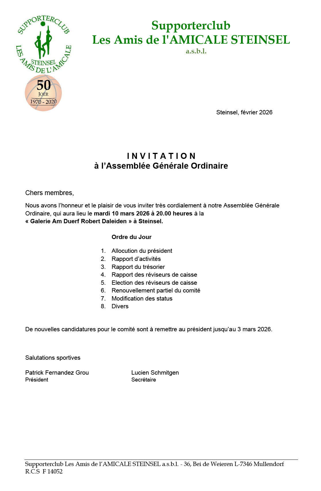 Supporterclub – INVITATION à l’Assemblée Générale Ordinaire